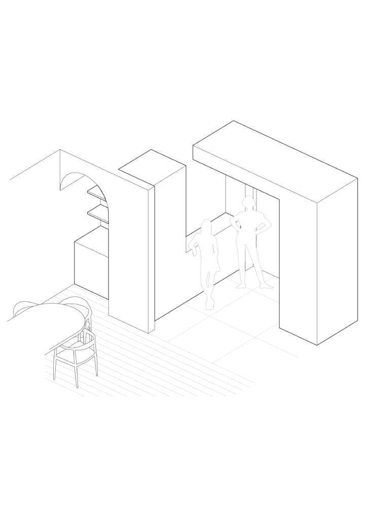 Datant des années 1970, l'appartement n'avait connu aucun travaux de rénovation depuis sa construction. Il développe de grands espaces bénéficiant de balcons filants et d'une vue panoramique sur les toits de Bordeaux. Orientées sud-ouest, les pièces de vie sont baignées de lumière jusqu'au dernières lueurs de la journée. Grâce à ses ouvertures traversantes, l'appartement bénéficie également d'une parfaite ventilation naturelle. Les ambiances alternent au gré des pièces, en gardant le bois, qui apparait par touches, comme fil conducteur de l'ensemble pour affirmer une identité fidèle à l'esprit seventies.